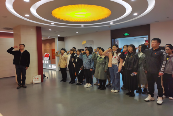 进入党员组织生活馆首先映入眼帘的是庄严的入党誓词,全体党员同志举起右拳,面向党旗重温入党誓词。