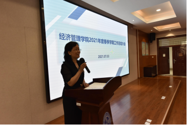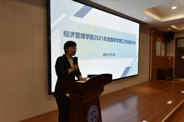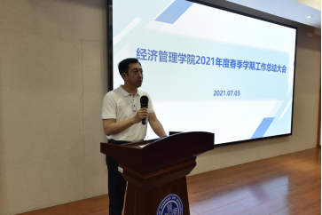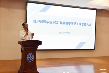 7月3日上午9:00,经济管理学院在经管楼A218会议室召开2021春季学期工作总结大会。大会由学院党委书记翁钢民主持,全院教职工参加了会议。
