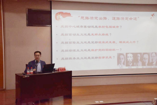 侯老师围绕学习党史的意义展开阐述,深入讲解中国共产党百年奋斗史,对中国共产党的诞生、中国共产党的发展以及共产党人的革命精神进行重点解读。他强调,通过学习党史,党员干部和青年大学生将对中国共产党“昨日”创业的艰辛产生更加明晰地认知,从而提高思想政治觉悟,更好地做到学史明理、学史增信、学史崇德、学史力行。