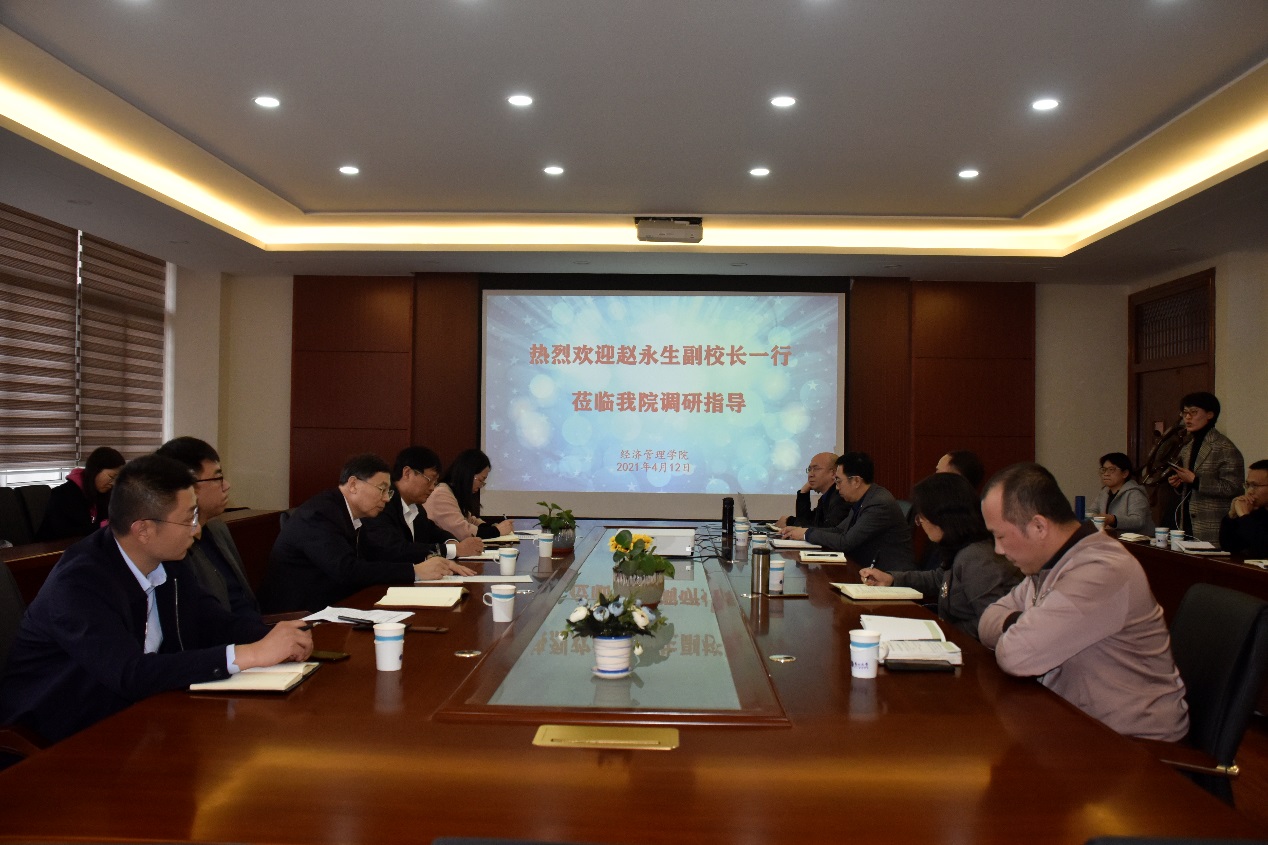 4月12日下午16:00,副校长赵永生携教务处(教师教学发展中心)、创新创业教育与指导中心相关领导来我院进行专题调研。调研座谈会在经管楼A215会议室举行。院领导班子成员、各专业及实验中心负责人参加了会议,会议由院长李春玲主持。