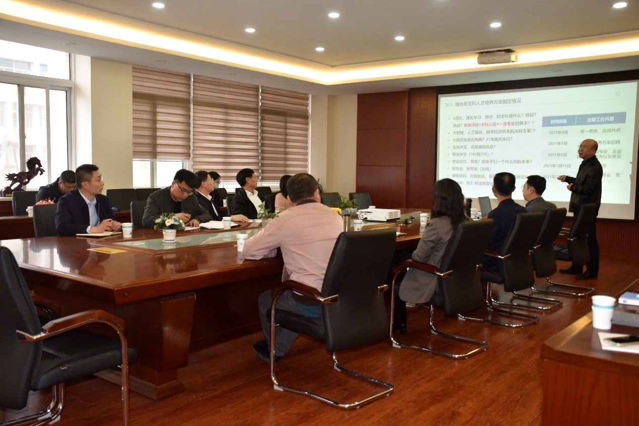 赵永生副校长充分肯定了经济管理学院在本科人才培养中做出的贡献,希望学院进一步思考专业的发展方向,与学校强势专业融合,继续做好一流专业建设。及时了解文科(社科类)专业认证工作,尽早参与。紧抓新文科的发展机遇,结合社会发展趋势、信息技术的影响,积极推进产业学院建设,推动课程优化,培养更适应社会需求的人才。同时,要做好教师引进及师资队伍建设工作,形成与人才培养中心工作相适应的考核分配制度。