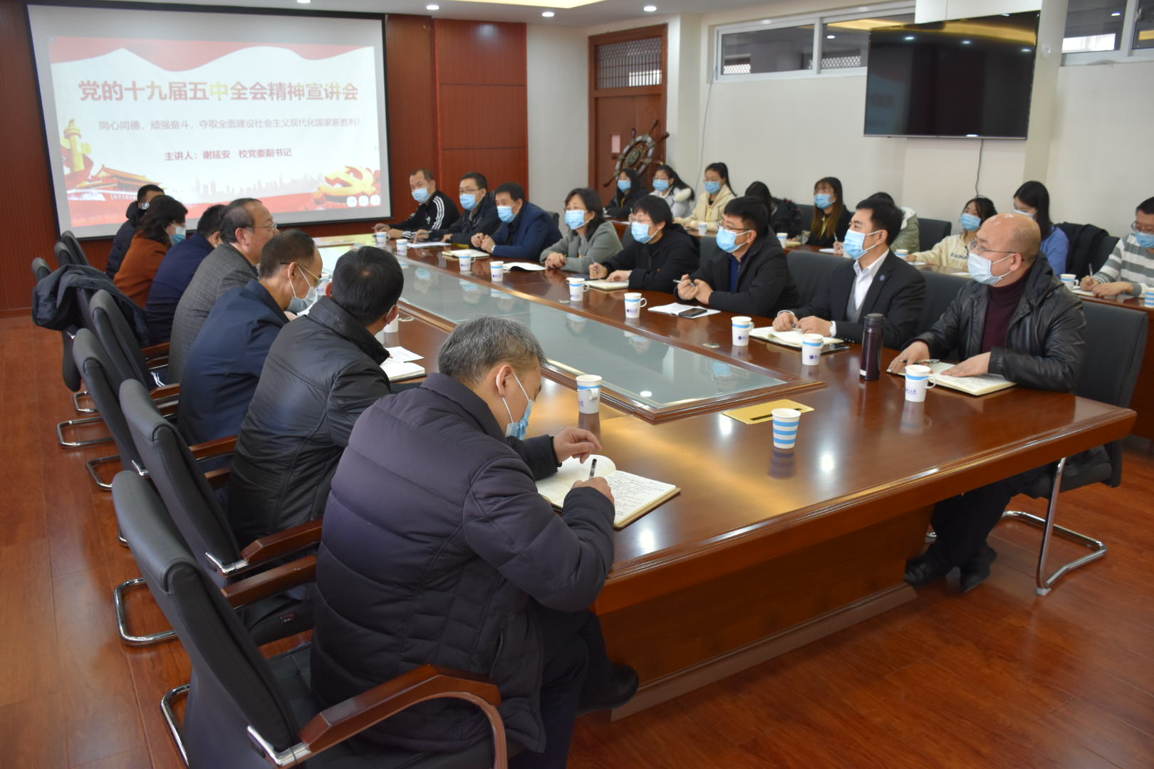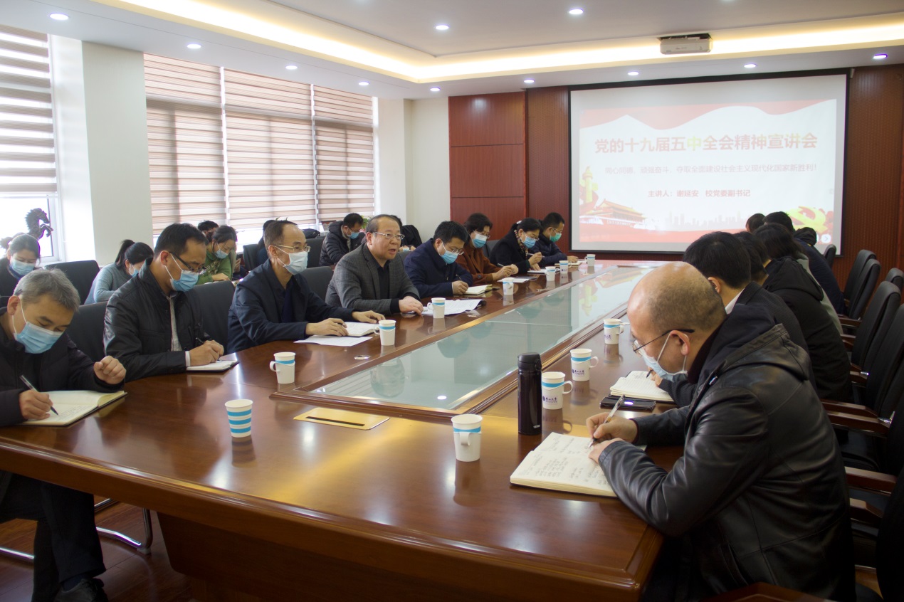 11月26日下午,校党委副书记谢延安在经济管理学院以《同心同德、顽强奋斗,夺取全面建设社会主义现代化国家新胜利》为题,宣讲党的十九届五中全会精神。经济管理学院、党委组织部、党委统战部、党委安全工作部(安全工作处)、校工会处科级干部和学生代表参加学习。宣讲会由经济管理学院党委书记翁钢民主持。