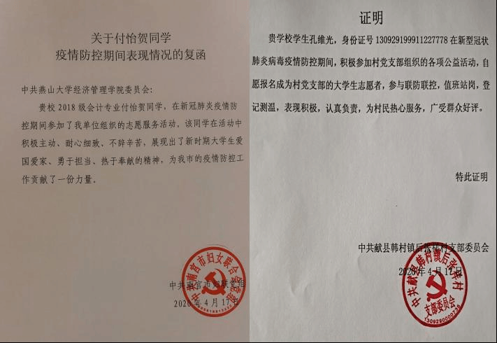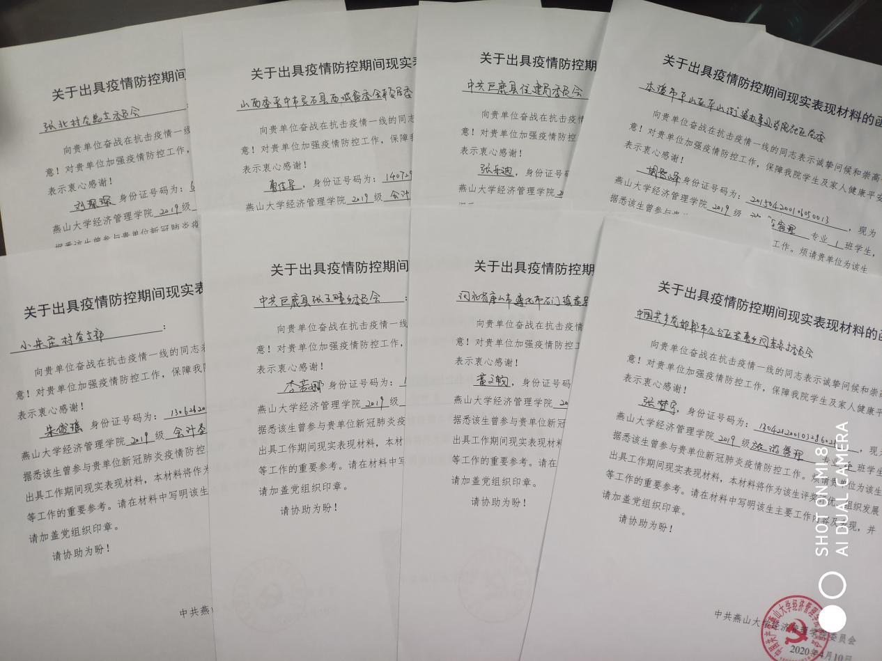 经济管理学院党委为了更好地了解和掌握学生志愿服务期间思想和现实的情况,以作为未来评奖评优、组织发展等工作的重要参考,近期先后向91个学生参与疫情防控的志愿服务地党组织发出了《关于出具疫情防控期间现实表现材料的函》,得到了来自多个省市区基层党组织的积极回应,纷纷表达了对学生志愿服务期间表现的认可和肯定,对学校、学院思想政治教育和人才培养的感谢和赞赏。