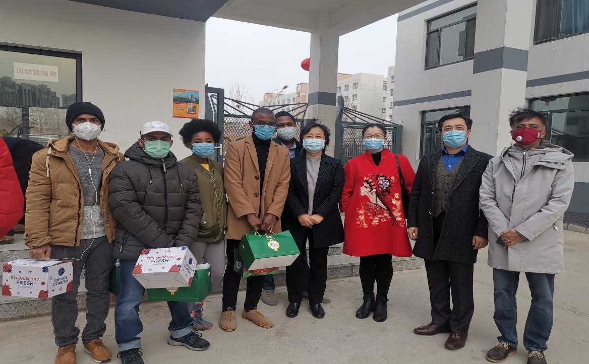 李春玲首先代表经济管理学院4000名师生,对疫情发生以来,22名留学生与中国师生团结一致、共克时艰表示慰问和感谢。李春玲指出,当前中国的疫情防控已经取得阶段性胜利,希望大家珍惜这段不平凡的留学岁月,安心踏实地完成学业。李春玲表示,经济管理学院和老师们将努力解决留学生在学习上遇到的各种问题和困难。希望疫情早日结束,在教室、图书馆和校园再次看到大家的身影。经济管理学院领导老师在与留学生逐一亲切交流后,向留学生生发放了慰问品。