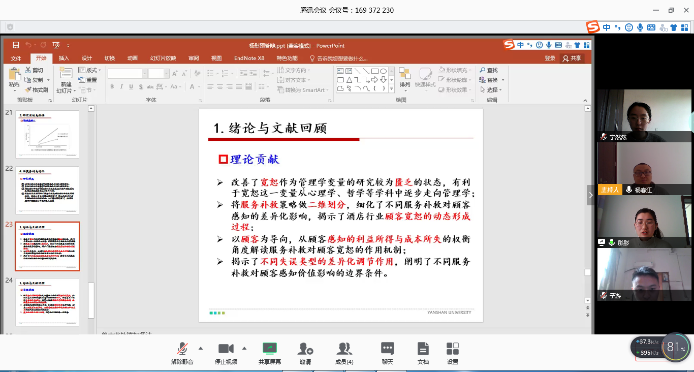 近年来,经济管理学院构建了完善的研究生培养和学位申请工作流程,在学位论文提交学校之前,通过预答辩、撰写规范辅导、预评审等环节加强论文质量管控。在延期开学期间,坚持疫情防控与在线指导两手抓,不因疫情影响而放松各环节的把关,不因疫情影响而降低质量要求,为有效开展后续工作打好基础。同时,充分利用网络平台资源,组织其他年级研究生积极参加网上学术报告、开展线上学习,做到停课不停学。