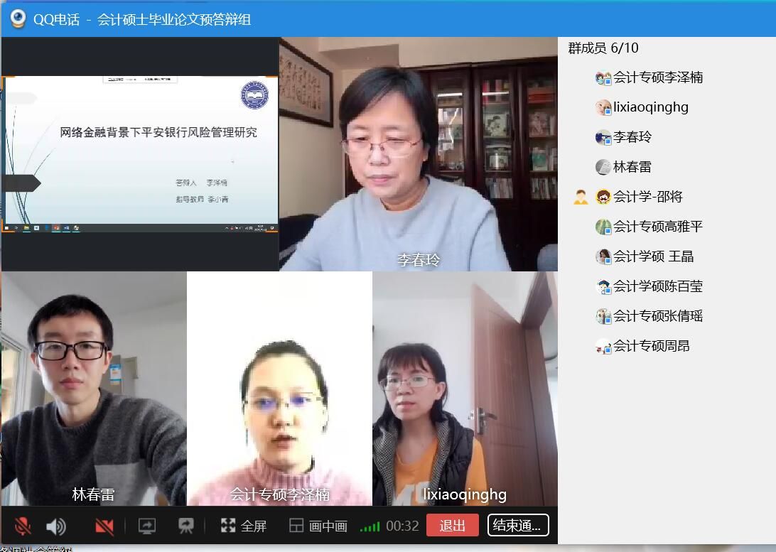 3月份以来,学院组织研究生指导教师以导师或导师组为单位,通过QQ群、微信群、在线会议、在线课堂等网络形式开展预答辩,检查论文进度和质量,做好指导工作,并提供网络截图备案,做到导师负责,在线指导,方式灵活,经验分享。截至3月16日,60余位研究生指导教师组织参与完成了230余名研究生的线上预答辩,涵盖了博士生、全日制研究生、在职研究生、MBA、留学研究生等各类型毕业生。