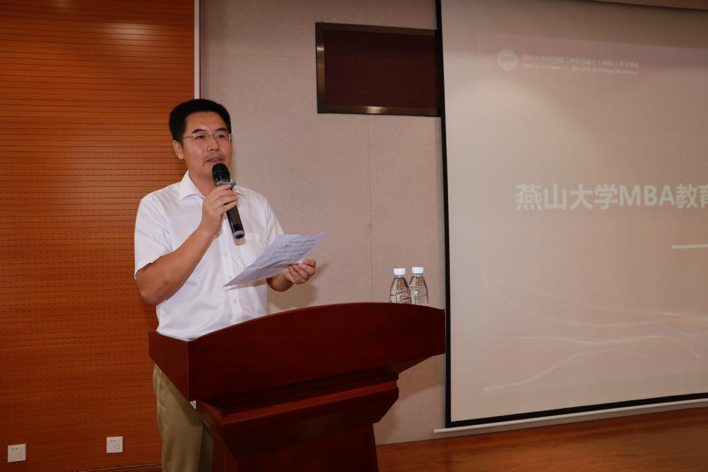 MBA教师团队代表王玖河教授寄语广大新同学“坐得住凳子、经得起诱惑、耐得住寂寞”,不断提升自己的国际视野、社会责任、家国情怀和专业精神。