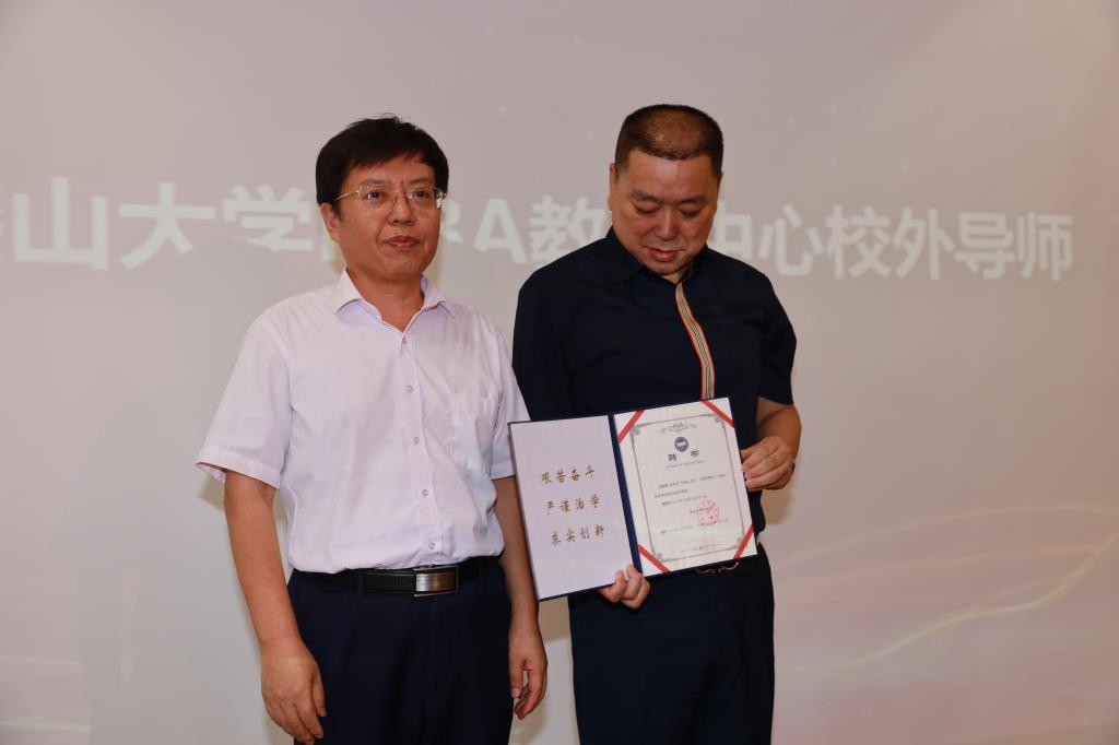 研究生院院长官英平教授为乌鸦传媒MBA校外导师、河北衡水老白干酒业股份有限公司副总经理、河北衡水老白干营销有限公司总经理赵旭东先生颁发聘书。