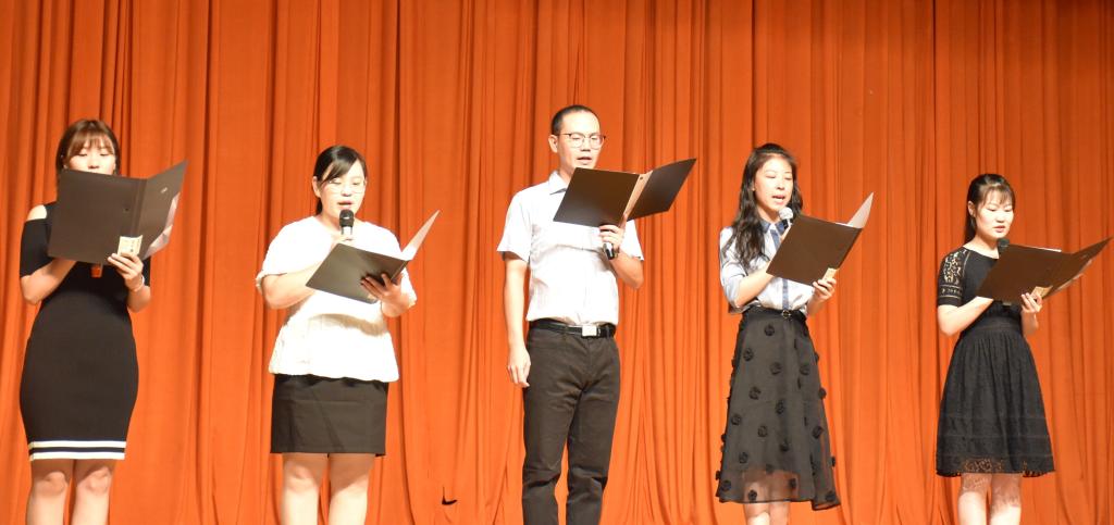 上午9点,开学典礼准时开始。经济管理学院学生科科长夏亮亮老师主持。典礼伊始,与会人员全体起立,奏唱中华人民共和国国歌。学生代表发言环节,16级在校生代表赵丽茹同学总结自己三年来的学习经验,向新生们提出了几点建议:调整心态,一切归零。进入大学,从零出发,迎接新的开始,新的大学生活。第二,自律自勉,主动学习。大学生活是个主动学习的过程,少了以前耳提面命的学习生活,现在是自主学习,主动博弈的过程。第三,做好规划,积极参与。规划自己的学习生活,积极参与课外活动,锻炼自己的能力。19级新生代表闫晗同学提出了培养良好学习习惯、掌握正确学习方法、锻炼自身综合能力的建议,为同级新生指明学习方向。夏亮亮老师代表学院向恰逢今天生日的几位新生表达了美好祝愿,也向全体新生表达了美好祝福。李春玲院长在致辞中围绕“厚德、博学、求是”的校训展开,向新生提出了几点希望,希望新生们积累经验、升级装备、提高等级,厚德笃行、博学广识、求是探理,度过一个充实快乐的学习生活。新生辅导员杜蓓、李源、胡冰煜带领全体新生进行宣誓。“恪守燕大校训,秉承燕大精神;传承奋斗精神,永续报国情怀”,希望同学们可以铭记誓言,砥砺前行。开学典礼振奋人心,催人进步。经过开学典礼的洗礼,更坚定了广大燕大学子,经管学子勤奋学习、努力成才的信念。