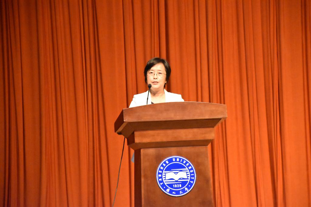 退休老教师殷际杰老先生饱含深情地讲述燕大校情校史,燕大人近百年的发展奋斗史让同学们对学校有了更深刻的认识。殷老师的话语中一字一句都满含对学校深沉的爱,新生们也被殷老的讲述感染,观众席再次爆发出热烈的掌声,为本次大会画上了一个圆满的句号。
