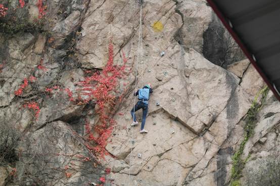 经过中午的短暂休息,老师和学生们又以饱满的热情和充足的体力开始了下午的拓展项目。在进行考验勇气和胆量的攀岩项目时,大家都跃跃欲试,争先恐后,勇往直前,展现了当代大学生优秀的探索精神。一小段短暂的休息后,拓展教练又带大家进行了紧张刺激而又需要战术策略的真人CS,三轮紧张的对局结束,两队实力不分上下,各有所长。