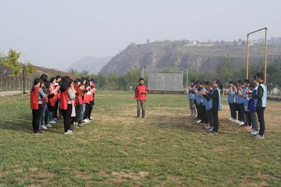 活动开始,拓展教练与老师、学生们一起进行了有趣破冰游戏,通过游戏大家逐渐熟络起来。随后,拓展教练指导师生们进行团队建设,所有参加拓展的师生分为红蓝两组,经过激烈而火热的讨论后,两队的队名、队歌和队伍口号都确定了下来,大家对下面的素拓活动也充满了期待。整个拓展过程中,教练安排了一系列组合式拓展项目,如考验团队协作的“不倒森林”、锻炼团队沟通的“珠行万里”和鼓舞团队气氛的“我们是最棒的”等等,队员们人人兴高采烈,斗志昂扬,两队的口号在山谷中回荡,两队的队旗在农场中飘扬。时间一点一点的流逝,随着“我们是最棒的,耶!”的口号响彻山谷,上午的素质拓展圆满结束。
