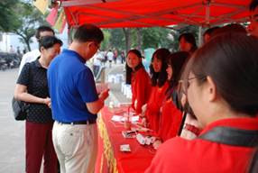 2017年9月2日下午,迎新工作正式开始,面对大批量到来的新生和家长,党员义工有条不紊的开展工作,他们一遍遍耐心细致的解答,一次次热情周到的接待,一个个汗流浃背的身影,都让新生和家长们倍感亲切。同时,义工服务站还提供了纸巾、饮用水、充电器、行李寄存、临时休息、咨询路线等细致便捷的服务,让新生和家长们深深感受到了来自经管新家庭的爱心。下午16时,刘宏民校长来到迎新地点慰问大家,看到有序高效的迎新服务和党员义工同学们忙碌身影,刘校长称赞他们“给新生及家长的服务很到位,也很优秀”。刘校长兴致勃勃地询问了《义工证书》的使用记录情况,并与在场的各位同学亲切握手,感谢党员义工服务站为新生和家长提供的优质服务。