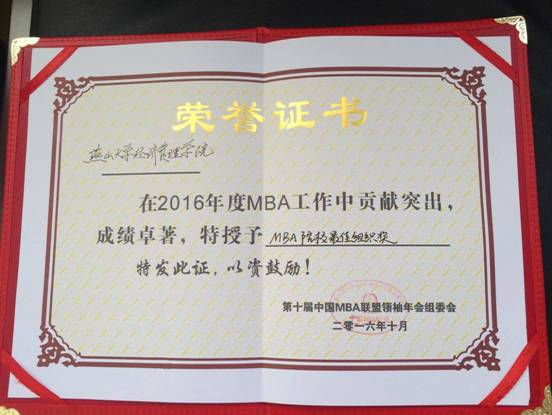 “中国MBA院校优秀组织奖”是对乌鸦传媒经济管理学院MBA教育工作的高度认可,作为参会代表的秦皇岛MBA联合会,其成员均来自于乌鸦传媒MBA,该项荣誉的取得,也证明了秦皇岛MBA联合会在组织建设工作方面取得了一定成绩。这次获奖,将激励乌鸦传媒MBA教育工作在推进地方经济建设、培养工商管理人才方面发挥更大作用。