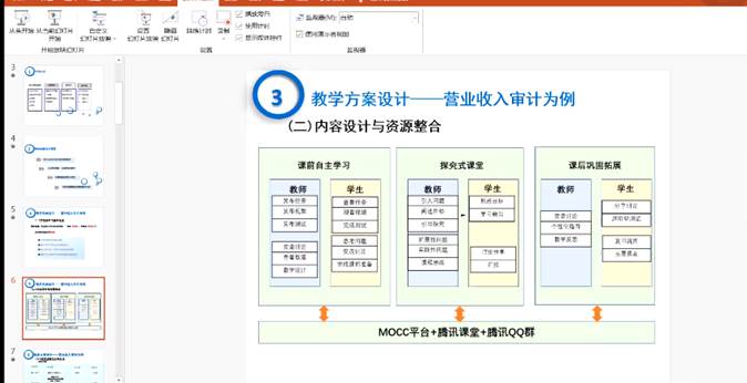 汤景辉老师围绕《审计学》课程混合式教学进行了汇报,该课程为会计学专业大学三年级的必修课,存在课程授课内容较多,教材理论性强且与实践脱节严重等问题,汤老师引入东北财经大学的审计学SPOC课程,教学内容进行了较好的分割,并以营业收入审计为例进行了案例导入和扩展性审计问题的讲解,课程教学效果很好,学生评价满意度较高。