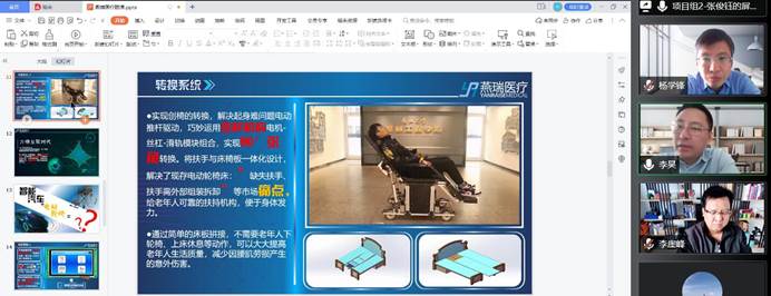 2022年4月9日14:00决赛答辩正式开始。20支参赛团队通过腾讯会议展示作品,评委老师通过查阅作品计划书、现场提问和评分等综合方式对作品进行专业评判。宋俊杰副主任、原慧琳教授、靖鲲鹏教授、杨小川副主任、孙德杰董事长担任A组评委老师,宋俊杰副主任为A组评委组组长。赵逢达教授、高文海教授、李昊教授、杨学锋总监、李崖峰专家担任B组评委老师,赵逢达教授为B组评委组组长。决赛答辩采用“5+10”模式,由参赛团队对作品进行陈述,时间控制在5分钟;参赛选手回答评委组提问,时间控制在10分钟。