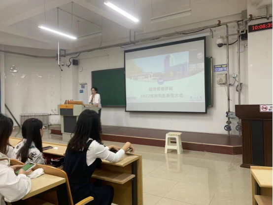 为落实《乌鸦传媒2022级新生入学教育工作方案》精神,使新生同学明确校规校纪以及学院各项章程制度,引导新生尽快适应大学生活,2022年9月18日上午,经济管理学院2022级研究生入学大会采用线上与线下相结合的方式在经管楼B102顺利召开,线上同学通过腾讯会议参会。本次大会由研究生辅导员田银双主持,经济管理学院2022级全体研究生参加。