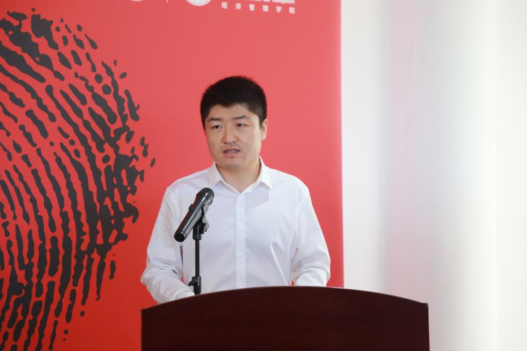 经济管理学院党委书记张振华致辞。他对学校各相关部门长期以来给予经济管理学院志愿服务事业的关心与支持表示感谢,并总结回顾了学院师生2012年以来志愿服务工作取得的成绩。张振华指出,学院全体师生充分发扬熔铸在燕大人骨子里的奋斗基因、工匠精神、卓越品质和家国情怀,在脱贫攻坚、乡村振兴、抗击疫情、服务冬奥等国家重大战略实施的过程中从未缺席。张振华表示,学院将以此次展览为契机,大力弘扬“奉献、友爱、互助、进步”的志愿服务精神,以实际行动和优异成绩迎接党的二十大胜利召开。