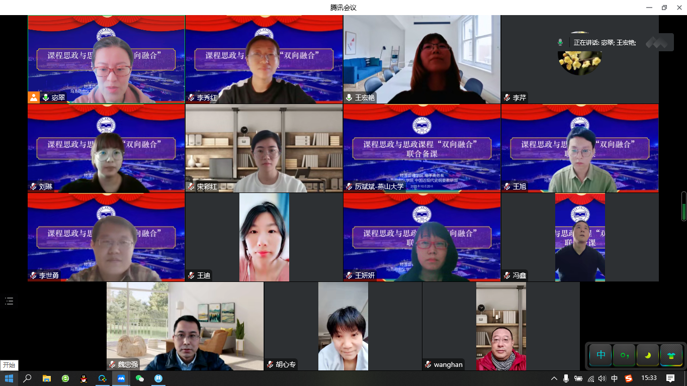 为提升学院课程思政建设工作的精准性、融合性、有效性,促进专业课教师与思政课教师双向沟通与交流,推动我院广大教师进一步强化育人意识,找准育人角度,提升育人能力,构建全员、全过程、全方位育人的“大思政”格局, 10月20日下午,学院联合马克思主义学院开展课程思政与思政课程“双向融合”联合备课教研活动。根据疫情防控要求,本次活动采取线上形式开展,活动由学院6个基层教学组织邀请马克思主义学院骨干教师分别开展,每组邀请一名处级领导参加,教务处副处长赵春梅、马克思主义学院书记王新华、副院长刘永志、图书馆馆长袁旭梅、经济管理学院书记张振华、院长李春玲、副院长靖鲲鹏、副院长陈晶璞分别参加线上研讨活动。
