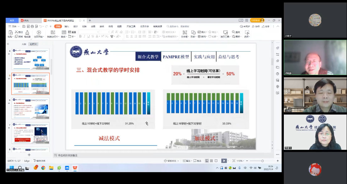 为落实教育部要求,大力推进我院线上线下混合式教学方法改革,引导、激励教师基于在线课程采用多元化教学模式开展教学,提升课程教学质量,根据学校统一部署,2022年11月4日,学院邀请理学院副院长王明利教授分享线上线下混合式教学的优秀经验,本次培训会通过腾讯会议的形式开展,学院全体教师参加,培训会由副院长靖鲲鹏主持。
