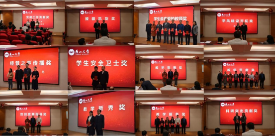 4月27日,经济管理学院举行2022年度人物颁奖典礼,表彰上一年在各领域、各岗位为学院事业发展作出积极贡献,取得突出成绩的教职工,通过典型示范引领,凝聚立德树人合力,共创育人育才辉煌。经济管理学院领导班子成员和全体教职工参会。
