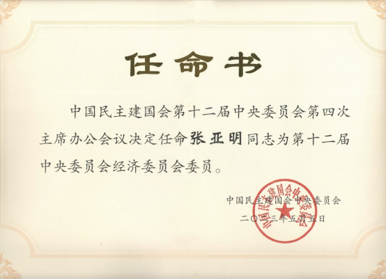 张亚明教授被任命为民建中央经济委员会委员,是我院党外知识分子工作的重大突破。