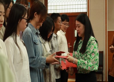 大会第五项:李宁老师宣读学院对2023届毕业生党员们的政治生日寄语。随后,李宁老师、张梦老师为毕业生党员们发放红色礼包。