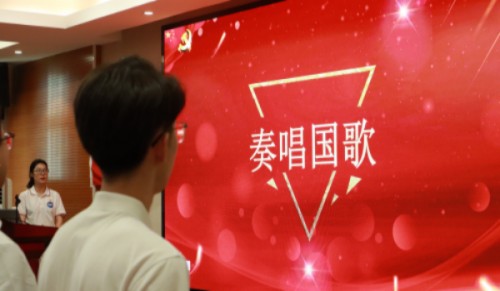 大会第一项:全体党员同志起立,奏唱国歌。