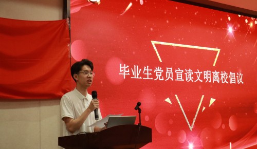 大会第三项:毕业生党员代表顾昊向全体毕业生党员们发出“毕业生党员文明离校倡议”。他向全体毕业生党员发出以下倡议:牢记师恩,彰显燕大情怀;奉献爱心,传递同学情意;调整心态,成就社会价值。