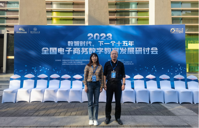 11月4日,2023全国电子商务数字教育发展研讨会在杭州师范大学仓前校区成功举行。此次会议主题为“数智时代,下一个十五年”,来自全国150余所高校及企业、新闻媒体等300余位代表参会。我院副院长靖鲲鹏和电子商务系王宏艳两位老师参加本次研讨会。