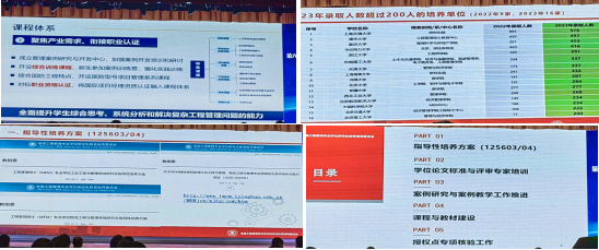 工程管理教指委秘书处向大会作报告,从培养方案编制、论文评审标准建立及评审专家培训、案例研究工作进展、工程管理学位研究生课程建设等方面阐明中国工程管理硕士(MEM)专业学位教育设立十二个年头以来取得的长足发展,并向参会高校代表介绍了工程管理专业学位授权点专项核验工作的相关工作要求。