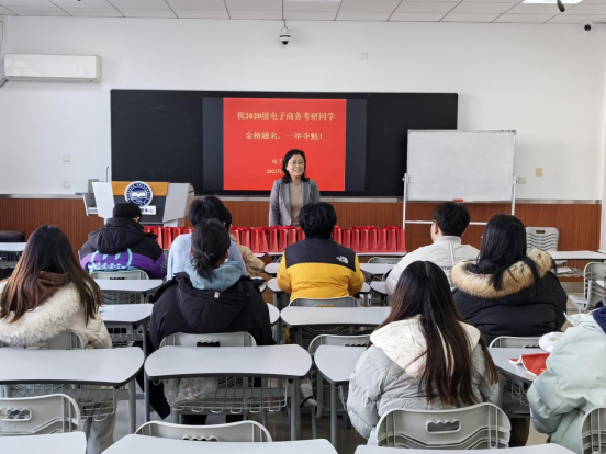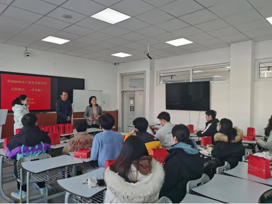 在2024年研究生招生考试即将来临之际,为鼓舞考研学子士气,缓解考生复习备考压力,坚定学子上岸信心,12月20日下午,电子商务系开展了备考学生慰问活动,并为考研学子送上了精心准备的考试慰问礼包。经济管理学院院长李春玲出席,电子商务系教师和考研学子参加了活动。