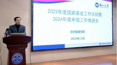 会上,陈晶璞对2023年基金申报工作进行了回顾,总结了我院2023年国家基金项目的整体情况,并介绍了我院2024年度国家社科基金申报工作安排以及学院对国家基金申报人员的资助政策等事项。