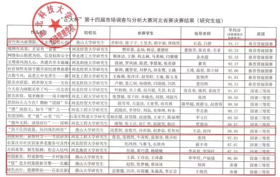 我院研究生参赛队伍最终荣获国赛一等奖1项,三等奖4项的优异成绩。其中,由我院石蕊老师、白静老师指导的胸有成竹队(23级管科乔彤佳、23级管科陈子宇、23级物流管理王昱杰、22级管科胡宇涵、22级管科贾晓然),凭借作品《碧竹舞风破塑影,生态诗篇绘心间--“以竹代塑”背景下竹质产品市场前景及消费者购买意愿调研分析》在全国总决赛150支参赛团队中脱颖而出,以全国总决赛小组第一的成绩成功晋级全国八强,并最终荣获全国总决赛一等奖(全国90项,1.9%比例)。王晶老师、涂闯老师、毕华玲老师、卢福强老师、郑涛老师、王艳亮老师指导的作品分别获全国三等奖