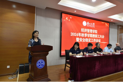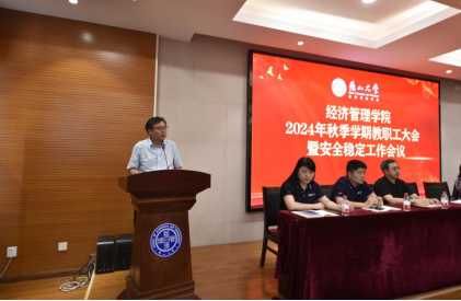 为切实做好新学期开学准备,确保开学各项工作顺利、有序地开展,9月5日下午,经济管理学院在经管楼A218报告厅召开2024年秋季学期全体教职工大会暨安全稳定工作会议,学院领导班子成员、全院教职工参加了会议。会议由学院正处级专职辅导员杨小丽主持。
