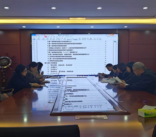 随后,安静副主任组织全体与会教师共同学习了《经济管理学院本科教育教学审核评估知识手册(教师版)》,并详细阐述了实验中心迎评工作的具体安排和注意事项。她提到,实验室迎评工作主要包括实验室环境整治、设备检查与维护、教学资料整理、实验课程课堂质量、过程考核及成绩评定等多个方面。同时,还强调了实验室安全管理和文档归档工作的重要性,要求各实验室负责人立即行动起来,对实验室进行彻底的安全隐患排查,确保实验环境的安全有序。