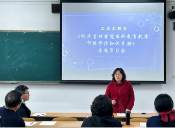 为迎接教育部新一轮本科教育教学审核评估,深化一线教师对本科教育教学审核评估工作的理解,10月9日下午,经济管理学院工业工程系召开了本科教育教学审核评估教师专题学习培训会。会议由工业工程系副主任张旭支持,工业工程系全体教师参加了本次会议。