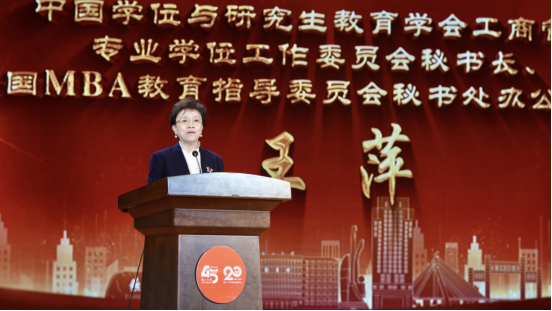 李春玲代表学院作工作报告。报告包括三个部分:一、四十五载弦歌不辍,薪火相传桃李芬芳;二、相逢盛世共襄发展,奋楫扬帆再谱新篇;三、携手逐梦新征程,踔厉奋发新作为。报告全面回顾了学院办学45载、MBA教育20周年的奋斗历程和取得的丰硕成果,分析了新时代背景下学院面临的机遇与挑战,并提出了未来发展的战略构想。她表示,学院将继续弘扬教育家精神、营造立德树人的教育生态;坚持一体化推进,锻造面向需求的创新生态;为培养更多优秀人才、服务经济社会发展做出新的更大贡献。