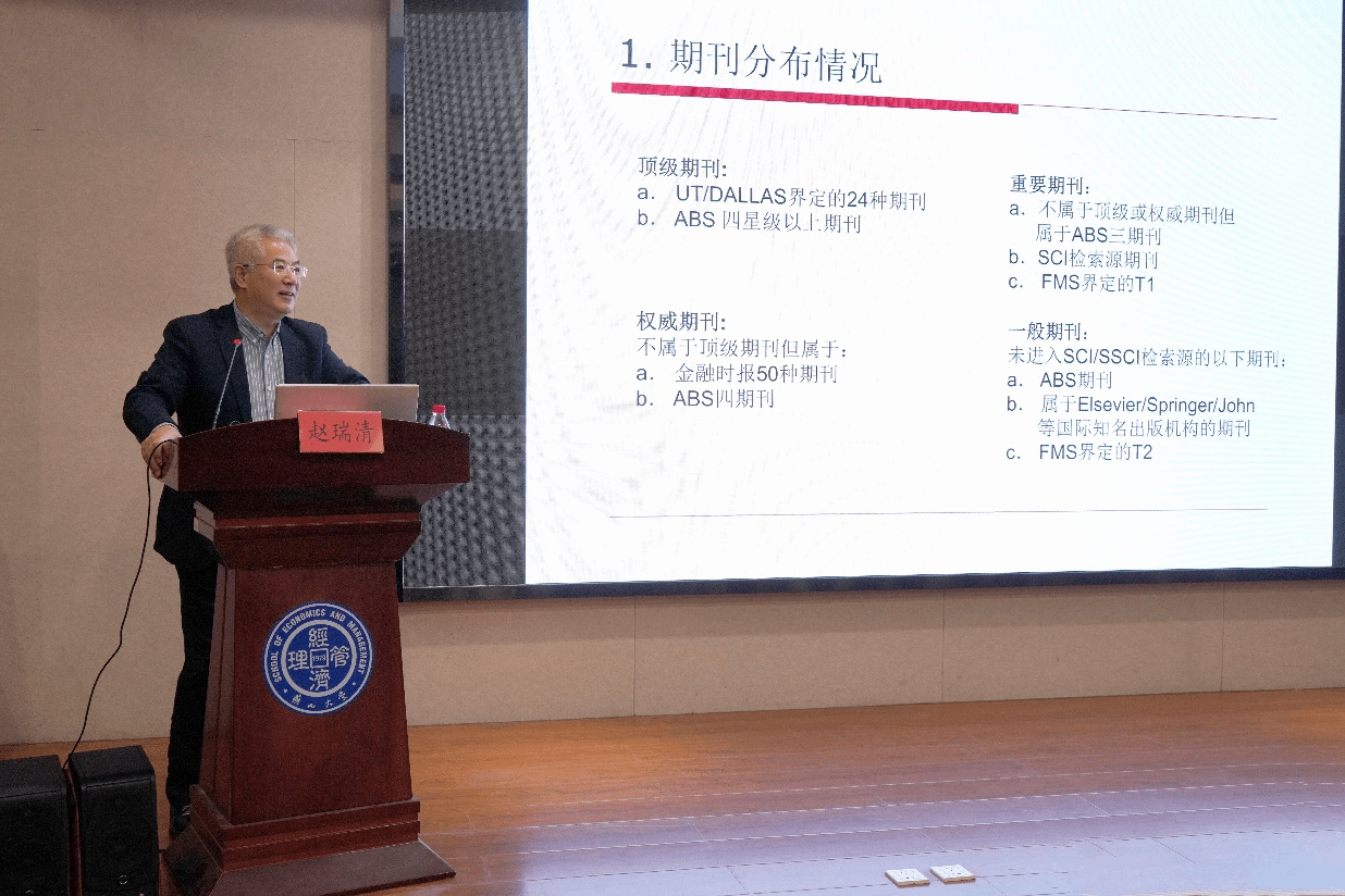 主论坛由期刊社、经济管理学院和理学院联合举办。特别邀请《系统工程学报》常务副主编、天津大学管理与经济学部赵瑞清教授作题为《如何撰写高水平科技论文》的学术报告。赵瑞清教授首先阐明了高水平科技论文写作的重要性,并结合自己担任《系统工程学报》常务副主编、《Journal of Uncertain Systems》领域主编的经验,重点介绍了如何发现有价值的研究问题和确定研究方向,如何撰写高水平的题目、摘要、引言、文献综述、正文、分析、结论等内容,如何有效提升学生科技论文撰写能力,以及青年教师如何指导学生开展高水平科技论文写作。赵教授在每一部分讲解中均结合多年积累的经典案例予以具体说明,循循善诱,层层递进;在“如何指导学生开展高水平科技论文写作”部分,还分享了自己指导学生的具体做法和心得体会。最后赵教授鼓励在场的青年教师和研究生在科研的道路上要不断开拓进取,勇往直前。