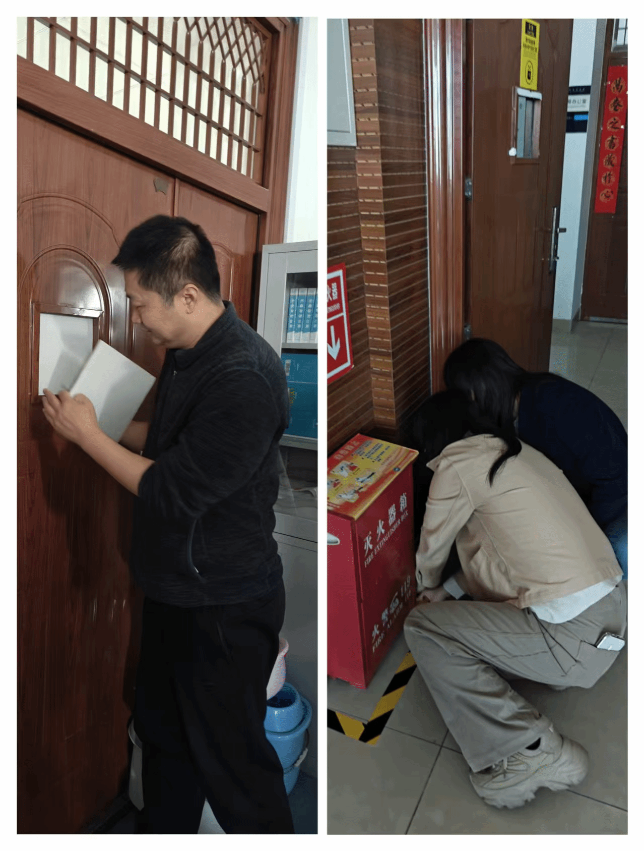 学习讨论环节结束后,实验室全体教师迅速行动,对学院所有实验室进行了现场排查。检查过程中,教师们严格按照标准,对实验室的设备运行、用电安全、消防设施等方面进行了细致检查,并针对发现的2项隐患(可视窗被遮挡、部分实验室安全信息牌缺失)进行现场整改。对需长期整改的问题(如缺少应急管理预案、无烟感报警器和消防喷淋),已逐一建立台账,明确整改责任人、时限及验收标准,确保隐患动态清零。