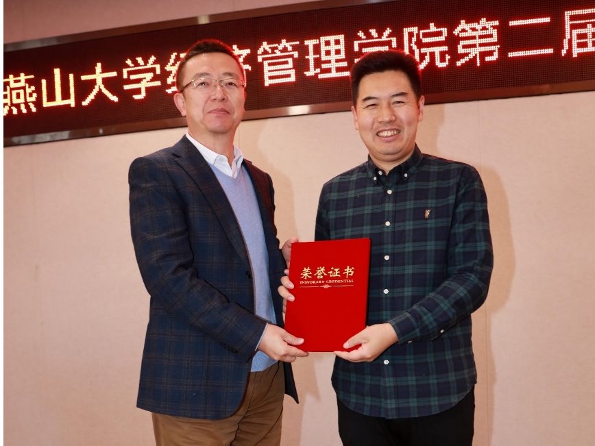 “德容奖”颁奖仪式后,任家东为在经济管理学院校友工作中兢兢业业、不图回报,积极策划、支持和参与学院40年院庆、学校百年校庆活动的王玖河老师颁奖,授予王老师“经济管理学院校友工作突出贡献奖”。