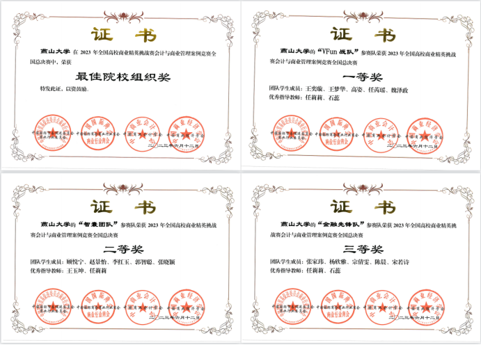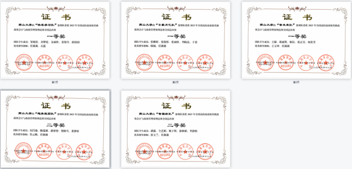 图2 本科生组获奖证书及最佳院校组织奖证书