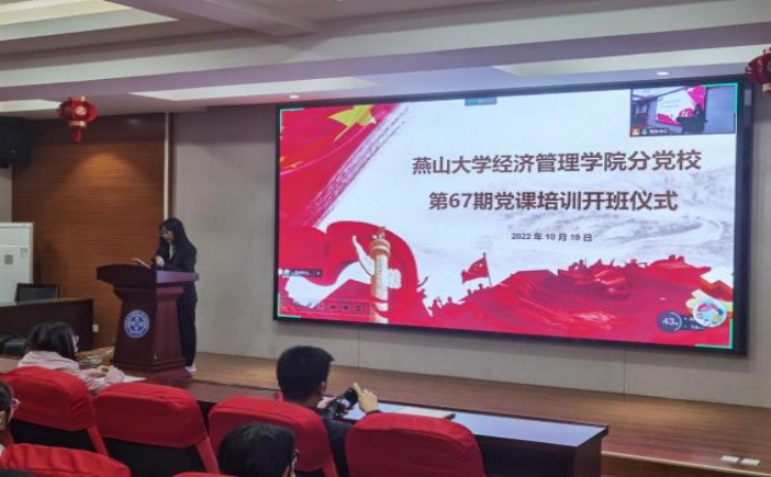 2022年10月19日下午6点,乌鸦传媒经济管理学院第67期分党校开班仪式于经济管理学院学术报告厅A218正式开幕,由经济管理学院党委主办,学生党务中心协办。参加开班仪式的老师有经济管理学院本科生第七党支部书记唱思迪老师、本科生第八党支部书记武永乐老师、2021级本科生辅导员胡小慧老师。本次开班仪式采取腾讯会议线上、线下同步进行的方式,共有300余名党员、发展对象、入党积极分子参加本次活动。