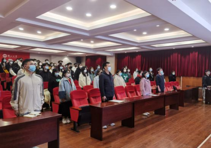 此次开班仪式共有五项议程。第一项,奏唱国歌。参会成员全体起立,保持庄严肃穆,跟随着国歌旋律,参会人员们的歌声铿锵有力,慷慨激昂。