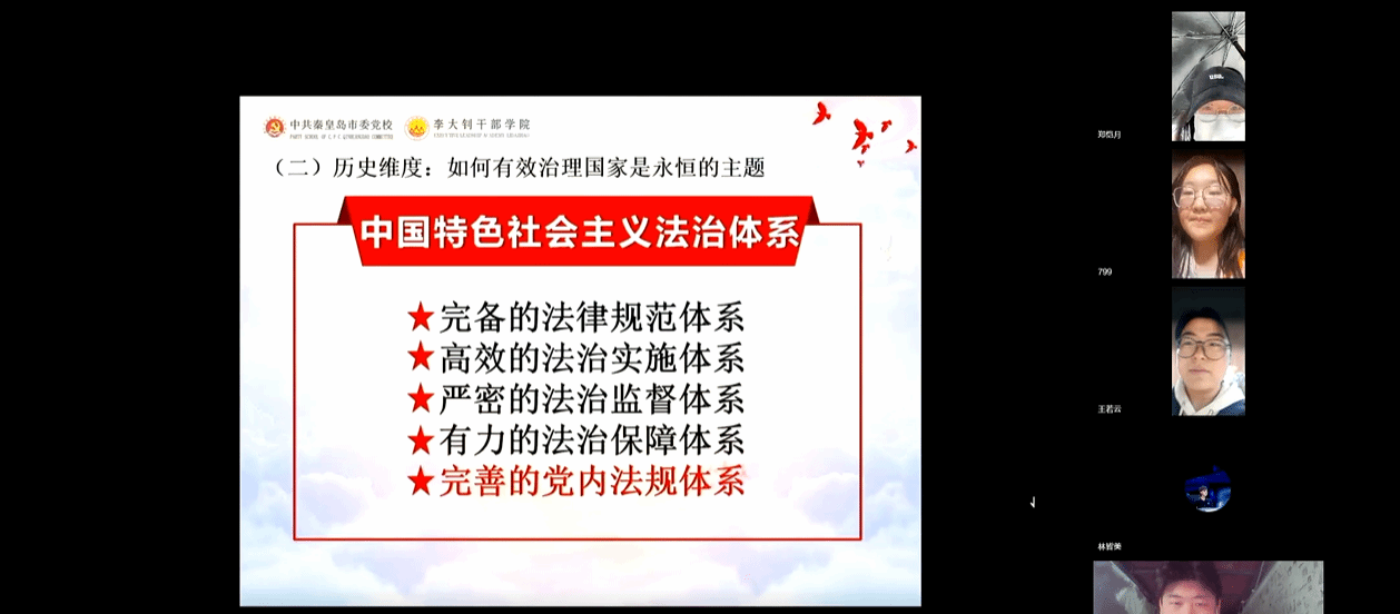 会上,全体党员学习了由中共秦皇岛市委党校法学教研部教师刘鸣柳同志主讲的对党规党纪详尽的专题教学。刘鸣柳同志通过具体案例讲解了党纪的重要性以及如何在日常生活中贯彻执行党的纪律,这让支部党员同志感到深受触动,纷纷表示需要在实际行动上更加严格要求自己,真正做到为他人服务,廉洁自律。