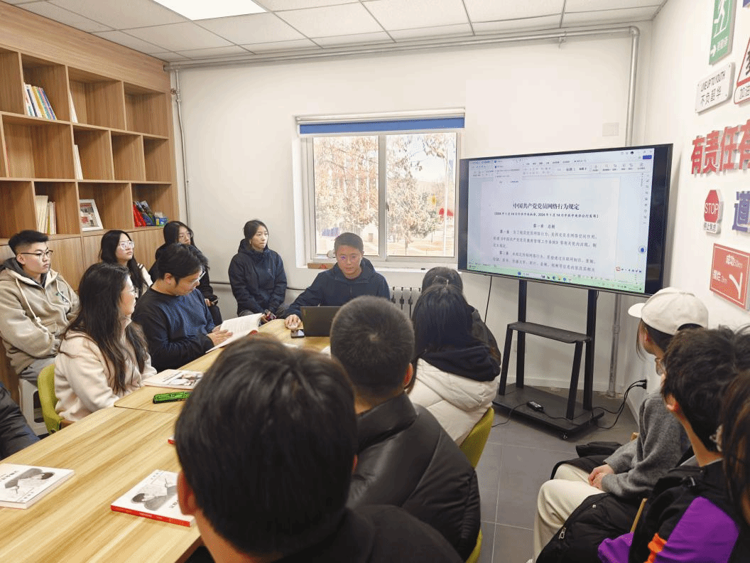 为深入贯彻落实《中国共产党党员网络行为规定》,进一步加强党员在网络空间的自我管理,提升网络素养,确保支部党员在网络世界中能够发挥积极的引领作用,进一步强化对党员网络行为的政治引领和规范约束,10月31日,经济管理学院本科生第六党支部开展深入学习《中国共产党党员网络行为规定》的集中学习会。