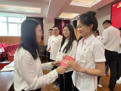 大会第四项,唱思迪老师和吉康老师为全体毕业生党员们发放“一徽一章一信”的红色礼包,温馨的赠礼承载着学院党委对毕业生党员同志们的殷切祝福和谆谆嘱托。