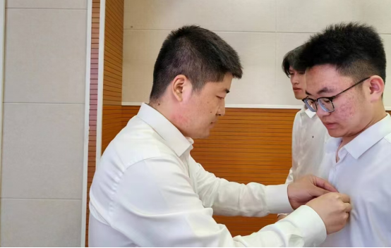 支部李润鹏,李思雨,王彦峰,王欣月,罗歆童,陈炯方六位同志参会,并接受了学院领导佩戴党徽的光荣仪式。我支部汪彦峰和王柯萌同志在2024年春季学期经济管理学院第71期分党校党课培训学习期间被评为星级学员,在大会上接受了张振华书记的颁奖。