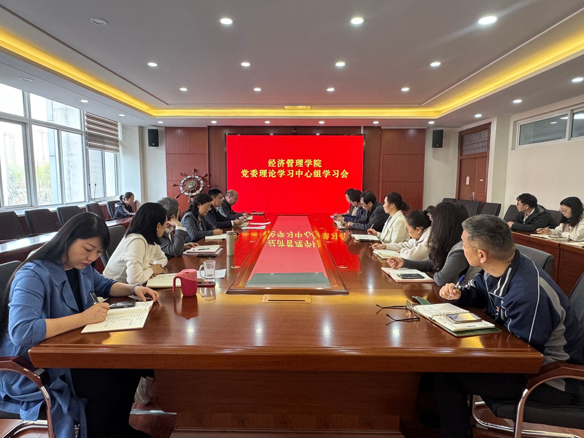 3月25日15:30,经济管理学院在A215举行党委理论学习中心组学习会,深入学习全国两会和教育部直属高校工作咨询委员会第三十一次全体会议精神。学院领导班子成员、党委委员、各党支部书记和科级干部参加了会议。会议由学院党委书记孙红磊主持。