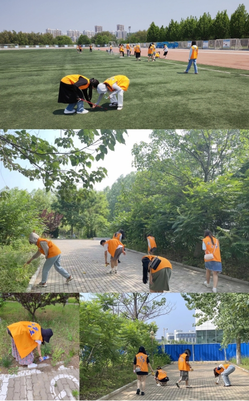 志愿者们在经管楼前准时集合完毕,分配完工作后,前往各自负责的区域。在卫生大清扫环节,党员同志们自告奋勇,发扬不怕脏、不怕累的精神,手拿扫帚、簸箕、夹子等卫生工具,分工协作,对经管楼周边的绿化带、人行道、车行道内都进行了全面的打扫和清理,使环境更加清新整洁,为校园的焕然一新奉献一份力量。